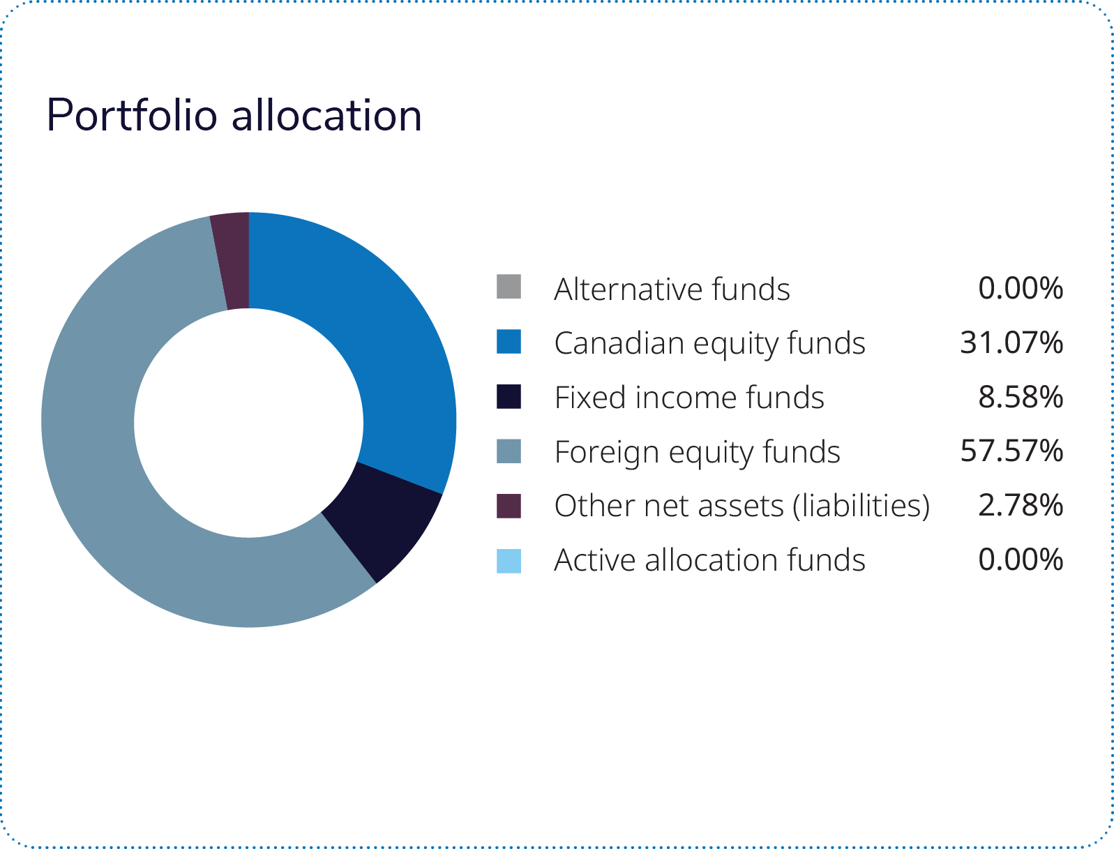 Asset allocation positioning was additive in the portfolio over the quarter. We maintained an overweight equity position, and we continued to be underweight duration. Sector positioning in U.S. equities was positive over the quarter. An overweight position in the consumer discretionary sector and an underweight position in the health care sector were additive, while an underweight position in the financials sector detracted. Country positioning was also additive. Within equities, overweight allocations to Taiwan and the U.S. were additive to performance, while overweight allocations to Spain and Sweden detracted as growth was slower in the Eurozone over the quarter. Manager selection weighed on returns over the period. An allocation to the T. Rowe Price – IG U.S. Equity Pool detracted as the fund underperformed its benchmark.
