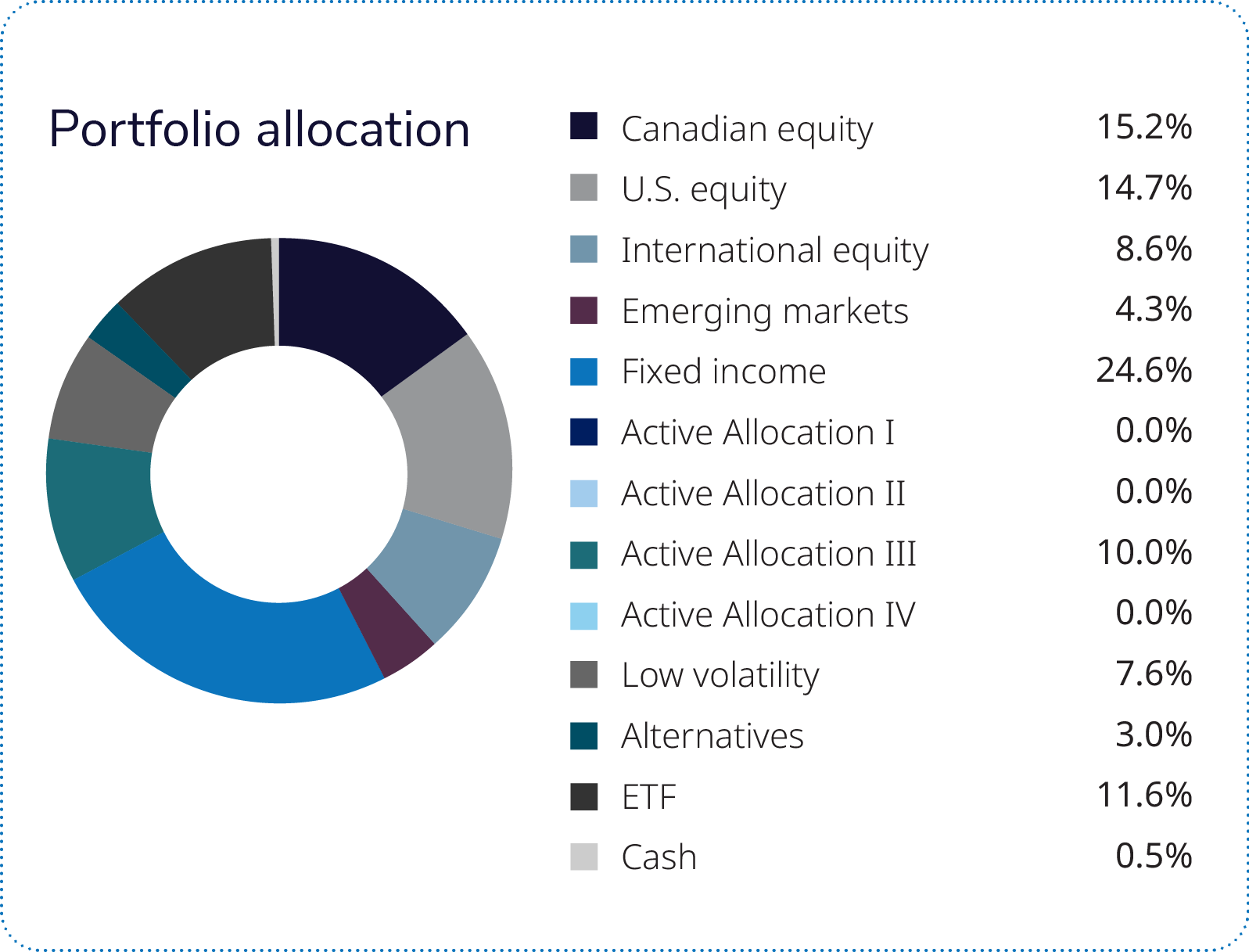 The iProfile Fixed Income Private Pool (+0.24%) is the largest component iProfile pool in the portfolio and therefore contributed positively to total returns despite its modest advance. Boosted by gains in its high-yield bond, short-term bond and real property segments, the pool outperformed its global fixed-income peer group, even as two of the three largest pool components (global bonds and multi-strategy fixed income) lost ground.